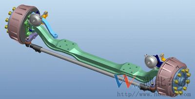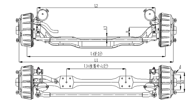 1.前軸為整體鍛造結構,采用加強設計,承載能力強; 2.車輪輪輞定位方式可采用球面定位或止口定位;3.輪距、板簧距可靈活調整;