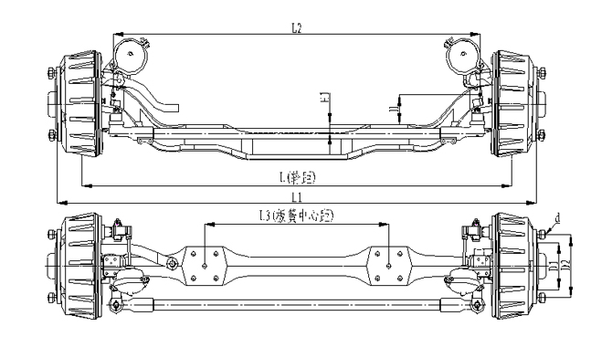 1.前軸為整體鍛造結(jié)構(gòu),承載能力強(qiáng);2.采用專用客車制動(dòng)鼓(帶散熱孔及散熱筋)和摩擦片,具有散熱效果好,使用壽命長的優(yōu)點(diǎn);3.車輪輪輞定位方式可采用球面定位或止口定位;4.輪距、板簧距可靈活調(diào)整;